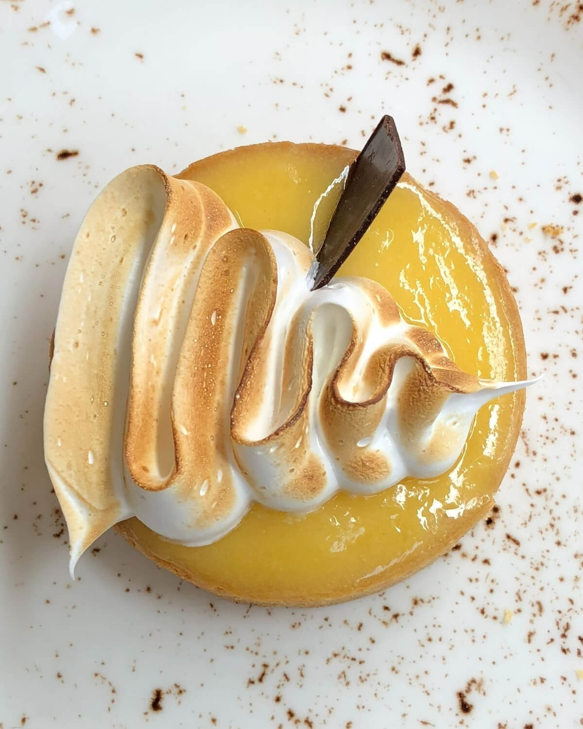 - Pocher la meringue sur les tartelettes et brûler au chalumeau.
